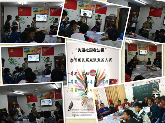 为使大一新生增强对学校的了解,增添学生社区积极的学习氛围,11月7日晚,24号楼楼委会组织了主题为“美丽校园我知道”的知识竞赛,比赛得到了24号楼社区各二级学院共10支队伍的积极响应,整场活动持续近两小时。