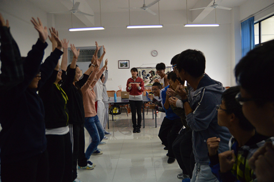 活动分为三个环节,在第一个环节中,学生们在老师的指导下,做了“学生信息卡”活动,在更快时间内相互了解,发现伙伴之间的异同点,加深彼此之间的了解;在第二个环节中,“成功穿越”的拓展活动,让同学们意识到集体中团结合作和创新精神的重要性;在最后一个环节中,“剪刀石头布”的素质拓展活动,训练了学生们的团队合作精神和竞争性。