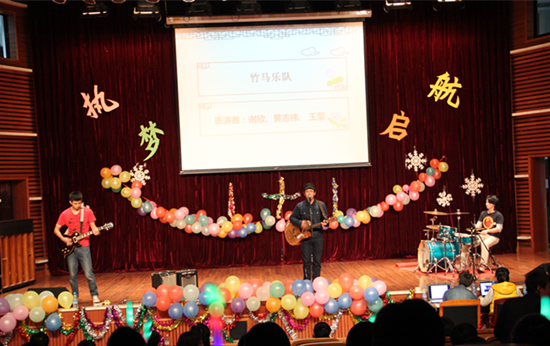 晚会节目丰富多彩,竹马乐队《我懂得》开场,引燃整场气氛。晚会既有钢琴、古筝、笛子的宛转悠扬,也有《韩舞》、《肚皮舞》的动感热辣;有歌曲独唱及合唱的清新悦耳,又有《红颜劫》舞姿的曼妙优雅;有相声《那些事》的诙谐幽默,也有《这些年》情景剧、《这儿、希望》诗朗诵的诗意飞扬。精彩的小游戏《Copy不走样》更是将晚会推向了高潮,引来阵阵掌声。晚会在合唱《爱因为在心中》圆满落下了帷幕。