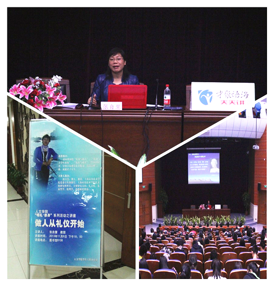 11月6日,人文学院在图书馆B106举行“明礼·修身”主题教育活动讲座,本次讲座以“做人从礼仪开始”为主题,由校党委宣传部部长、校礼文化研究所所长张自慧教授主讲,全场近三百名学生聆听了讲座。