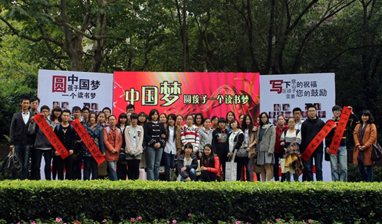 10月26日,由黄浦区文明办、黄浦区慈善联合会主办黄浦区浦爱志愿服务支持中心、黄浦区青年志愿者协会缘梦之家服务队承办的“中国梦,圆孩子一个读书梦”公益主题捐书赠书活动在黄浦区淮海公园举行。人文学院青和志愿者队的43名志愿者参与了活动,为山区孩子献上了一份爱心。
