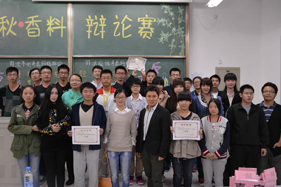 为了提高同学们的逻辑严谨度,开拓思维与眼界,香料香精技术与工程学院学生会举办了一年一届的“金秋•香料”辩论赛。经过四场初赛、两场复赛和半决赛的角逐,10月24日晚,第五届辩论赛决赛在第一教学楼开战。经激烈比拼,名次揭晓:2013级轻化一班荣获冠军,2013级轻化二班荣获亚军,2013级食品一班荣获季军,黄起成同学荣获“全程最佳辩手”称号。