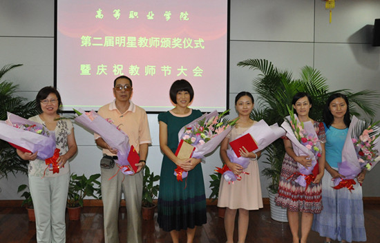 会上对获得第二届“明星教师”荣誉称号的杨丹、丁晓影、洪静、佟喜彦、李琳、周祖新等六位教师进行了表彰。学生代表向老师们送上了节日祝福。“明星教师”们讲述了他们因材施教、循循善诱的工作态度和责任感,同时对高职学院深入扎实的管理工作给予肯定。