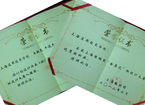 在上海植物园主办的“金茶花”杯设计比赛中,由生态学院黄清俊教授指导,王敏岚、牛俊杰两位同学设计的参赛作品《映》荣获入围奖,我校荣获优秀组织奖。