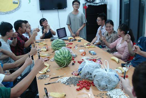 主持人同学简要地介绍了端午节的历史渊源,然后请出席同学和老师分别描述自己家乡庆祝端午的风俗,来自中国大江南北、风格迥异的风俗习惯让同学们大开眼界。在场师生还一起进行了“摇一摇”游戏,在游戏中收获愉悦感和幸福感。游戏结束后,大家一边吃粽子,一边听着优秀学长介绍英语四、六级的考试心得,即将参加四级考试的同学们从中得到了不少有用的信息。