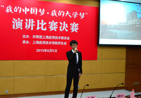 6月5日晚,由校团委主办、校学生会承办的“我的中国梦•我的大学梦”演讲比赛决赛在图书馆B102顺利举行。比赛邀请到上海师范大学谢晋影视学院播音主持专业著名教师、朗诵社指导老师颜缤、上海应用技术学院校团委周青老师、我校青年教工朗诵比赛一等奖获得者欧阳丹丹老师担任评委。