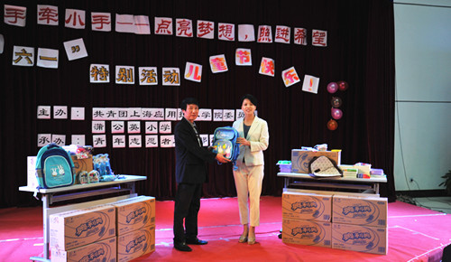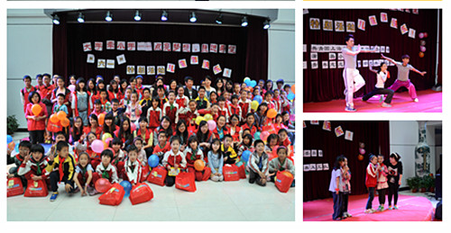 校团委书记韩磊代表我校迎接来自蒲公英小学吴波校长和蒲公英小学的师生们,并向小学生们表示亲切的慰问和节日的祝贺。义工队准备了武术、魔术等比表演,小朋友也上台表演、互动。随后,10多种游戏,如折纸、九宫格、掷筷子、比动作,既开发智力、又能换取小礼物,受到小朋友的喜爱。学校还为每个小朋友准备了书包、文具等礼品。义工们一对一地陪伴小朋友参观我们美丽的校园,欢声笑语传遍了校园。