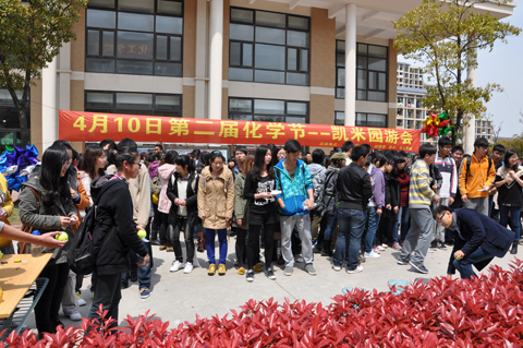 为丰富校园文化生活,增强大学生的科学文化素养,4月10日中午,第十二届校园文化艺术节暨社团文化节之“凯米游园会”在大学生活动中心前广场隆重开幕。