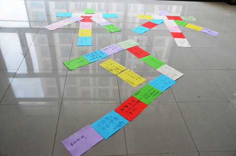 活动现场,师生们纷纷面对镜头或在彩色卡纸上道出对国家繁荣和民族富强的期许,对“中国梦”的想法以及自己的梦想与希冀。有的同学奋笔疾书,写下潇洒的“加油上应!腾飞中国!”字样,也有的同学沉思片刻,大声表达“中国梦是我们当代青年创新发展的力量,需要我们用力挥洒热血、青春,去描绘属于我们的未来”等。师生们的话语,无不体现出当代青年和国人对于中国梦的无限信仰和忠实践行。在工作人员的协助下,大家将写好的卡纸摆成一个大大的“梦”字,用微镜头记录下这些或大或小的梦想和祝愿。
