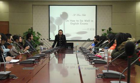 3月28日晚,speech bar迎来了今年在同济大学英语考研初试中取得第一名的吕亚琼同学为学弟学妹们开讲座,传授学习经验,解答学习困惑,讲座不仅吸引了外国语学院的学子,更吸引了很多其他学院的同学。