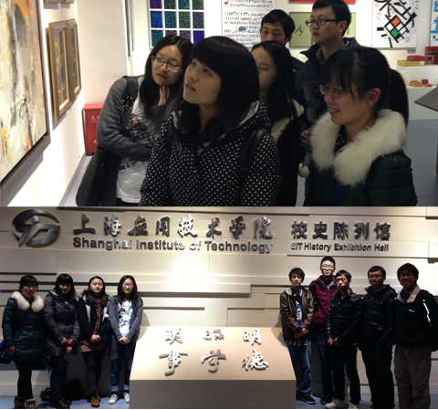 历程馆里陈列的丰富实物素材,反映了我校的前身:化专、冶专、轻专所走过的近50年辉煌历史。那时新中国百废待兴,这三所专科院校为新中国的工业建设输送了大量的新鲜血液。进入新世纪,三校一所合并组建了上海应用技术学院,继续为培养高水平应用技术型的一线工程师而不断努力奋斗着。看着上级领导多次视察指导我校建设发展的题词和照片,同学们受到了很大的鼓舞。穿过科研成果长廊,同学们无不为学校能在合校10年之内有如此快速的发展而感到兴奋。
