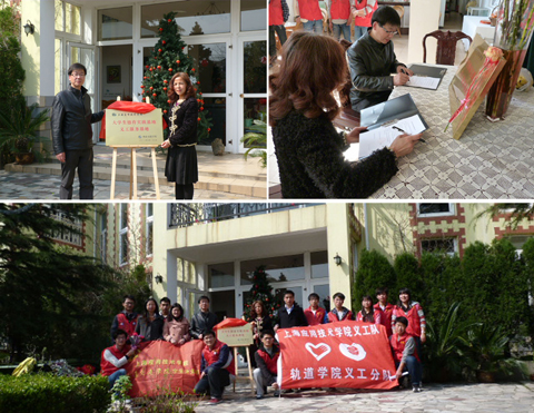 轨道交通学院学生志愿者一直坚持在广慈福利院开展志愿服务,通过这次揭牌仪式,把广慈残疾儿童福利院确定为学院志愿者、义工及党员教育的服务基地,这是学院义工对社会开展服务活动的探索,轨交学院德育教育活动向机制化、长效化又迈进了一步。