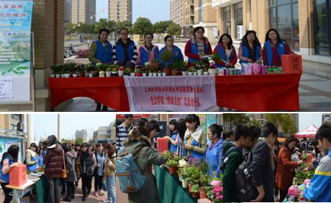 志愿者们乘中午下课人潮涌动之时,在一、二食堂门口忙碌了起来,她们通过发放宣传单让同学们意识到植树爱林的重要性,并向大家传授“植物养护小贴士”。志愿团队开展的具有生态特色的绿色植物义卖活动,更是让大家亲身参与到绿化中来。