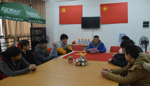 临时党支部书记就2013全国两会关注的热点进行介绍,并与学生党员们就两会热点话题展开讨论,了解学生党员的真实想法和对时事的看法,对理解出现偏差的观点及时进行解释说明和正确引导,从而起到正确、有效传达两会精神的作用。