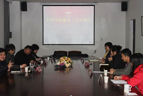与会人员就高校慈善工作的开展纷纷献计献策。会后,与会领导和老师参观了我校慈善爱心屋。