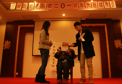 为深入贯彻落实十八大精神,广泛开展走基层,送温暖活动,近日,人文学院学生党员、入党积极分子来到党员服务基地——奉贤区兰公馆养老院举办“迎接2013元旦”文艺晚会。兰公馆养老院院长袁震、护理部主任陈林林和老人们观看了晚会。