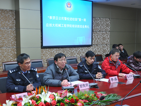 12月21日,我校机械工程学院首批公民警校培训班在图书馆B103举行结业典礼。奉贤公安分局领导、我校学生处副处长翁德明出席典礼。