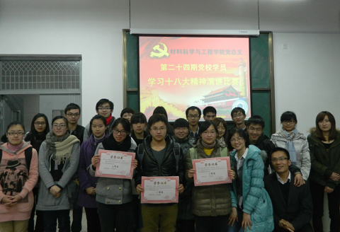 为配合学校“学习十八大精神宣讲”活动,更深入地引导广大师生切实领会党的十八大精神,材料学院党总支于12月19日晚上在第三学科楼A323举办了党校学员学习十八大精神演讲比赛。党总支书记李建民、辅导员及学院入党积极分子出席。