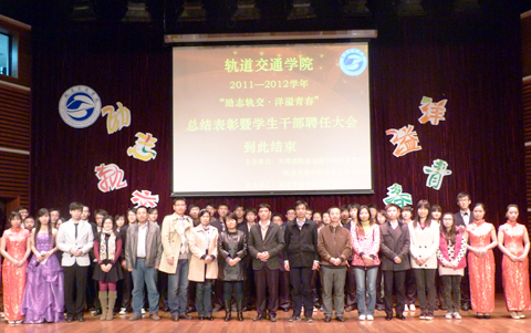 为表彰学院先进学生,树立榜样模范,在全院营造良好的全员育人氛围,轨道交通学院于11月19日举行“励志轨交 洋溢青春”2011--2012学年总结表彰暨学生干部聘任大会。