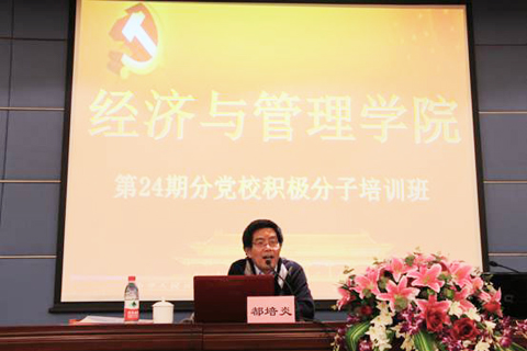 11月16日下午,经管学院诚邀华东师范大学硕士生导师都培炎教授为学院入党积极分子做了主题为“中国共产党党史与大学生信仰”的辅导讲座。讲座在行政楼117报告厅举行,机械学院、轨道交通学院等其他兄弟学院的入党积极分子学员也参加了此次讲座。