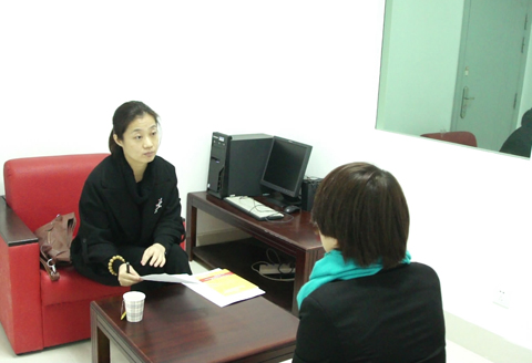 随后,两名面试官按小组进行模拟面试。在一对一面试中,有针对性地对学生存在的问题进行指导;在群体面试的演练中,让学生熟悉群体面试的风格以及应注意的事项。现场利用了社工实验室专用单面镜,同学们能够清晰看到和听到面试场景。