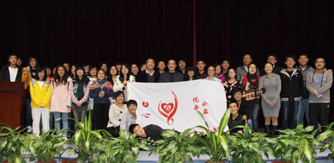 宋明枫祝贺“悦牵”公益服务队第三届义工大会的顺利举办,并对“悦牵”在过去一学年取得的成果表示赞赏。赵伟以自己的亲身经历鼓励每位“悦牵”队员去奉献、去体验做公益的快乐。“悦牵”外事部学生代表向新队员介绍了义工队的相关工作,用视频和图片展示过去一年队员在校内外公益活动的剪影。