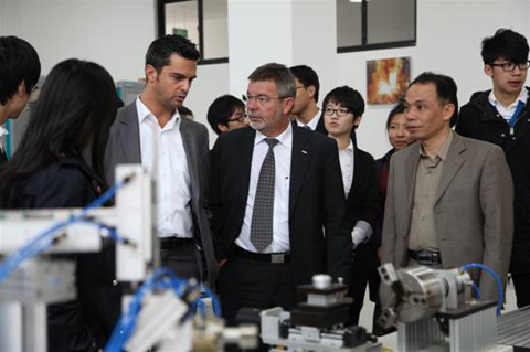 在工程创新学院常务副院长钱平、党总支书记范文蓓和15名学院赴德游学学生的陪同下,他们参观了西门子先进自动化联合示范中心、控制与仿真实验室和大学生科技创新基地。