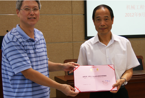 为了提升教育教学水平,提高学生专业认知程度和学习兴趣,机械工程学院日前邀请我校特聘教授、上海鼎龙机械有限公司总经理王照云先生,在图书馆B101举行了一场以“专业素质培养与大学生生涯规划”为主题的讲座,2011级和2012级学生生聆听了讲座。机械工程学院院长张锁怀、校研究生部副主任张东民出席了讲座,张锁怀为王照云先生颁发了“特聘教授”荣誉证书。