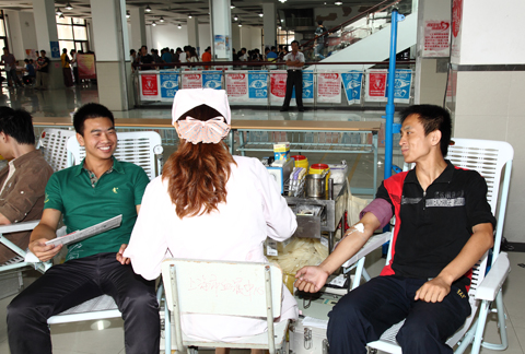 一位来自外国语学院男生告诉我们,为了参加这次无偿献血,他做了很多准备,一个月前就开始每天晨跑锻炼身体,并且积极为自己补充营养。他说:“在献血前我看过很多关于献血的报道,觉得这是一次人生的体验,是自己的社会存在感的一种升华。”