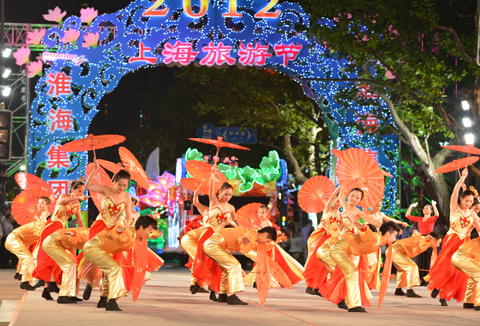19点30分,随着礼花在夜空中升起,旅游节开幕式正式拉开帷幕。上海市残疾人舞蹈团表演方阵开始在全长2.2公里的淮海路上进行巡演,雍容华贵的牡丹舞蹈给人以强烈的视觉冲击和艺术感染力。由于演员们天生聋哑,使得排练付出更多艰辛,通过数月的刻苦排练和层层严格审核,最终入选表演方阵,特教学生获得难能可贵的表演机会。