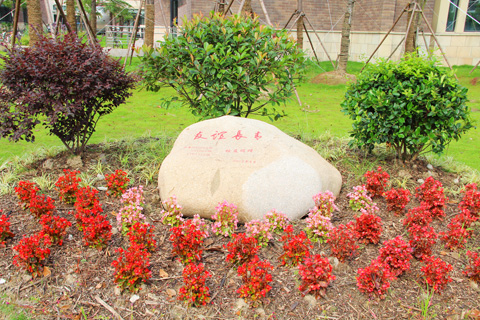 郁郁葱葱的湿地松与其周围的柏树浑然一体,松枝傲骨峥嵘,柏树庄重肃穆,寄寓材料学院培养出坚忍不拔的学子;松柏四季长青,象征校友与母校的情感纽带经久不衰。