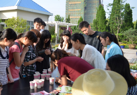 游园会除介绍植物园的各色植物外,还开展了众多有趣的娱乐项目。进入园子,迎面飘来清新醉人的花香,师生们纷纷闻茶品茶,享受其间。“摇箱子项目”、 “你画我猜”等项目,让大家游戏之余,学习到更多园林、园艺的知识。花卉义卖,其间,各色花卉、姹紫嫣红,可以说是琳琅满目,让人眼花缭乱,大家因着一份对花的喜爱,纷纷流连忘返。