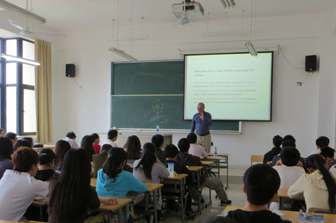 5月8日下午,加拿大UBC大学数学系GeorgeBluman教授应理学院邀请作一场关于“数学物理方程中的对称方法”的专题讲座,理学院院长许庆祥和教师、学生代表聆听了讲座。
