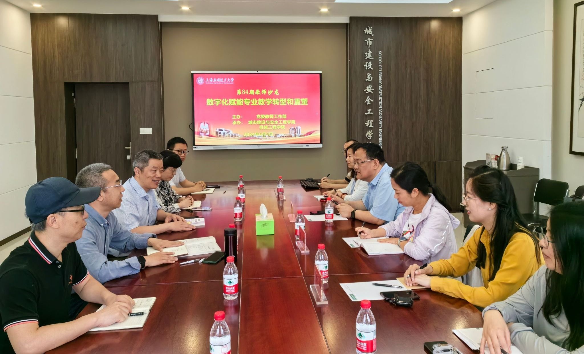 6月5日,由党委教师工作部主办,城市建设与安全工程学院、机械工程学院联合承办校84期教师沙龙“数字化赋能专业教学转型和重塑”。生态技术与工程学院党总支书记曹扬、计算机科学与工程学院副院长张晴出席,教工部、教务处、机械学院、城建学院教师代表参加沙龙。沙龙由城建学院党委副书记、院长丁文胜主持。