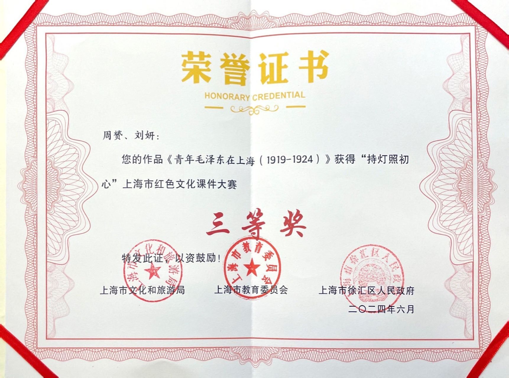 经过大赛组委会评选,马克思主义学院周贇、刘妍两位老师合作的作品《青年毛泽东在上海(1919-1924)》荣获了高校组三等奖。大赛为全市广大师生和场馆从业人员搭建了展示才华、交流学习的舞台,更有力地推动了上海红色文化的传承与弘扬。
