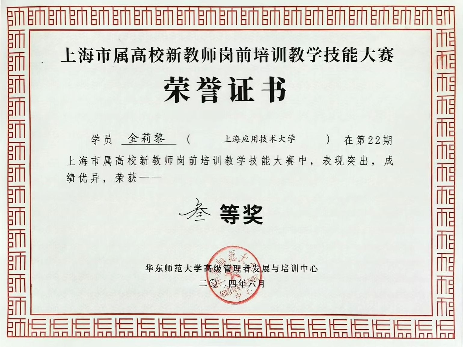 经过大赛组委会评选,我校马克思主义学院青年教师金莉黎荣获第22期上海市属高校新教师岗前培训教学技能大赛三等奖,金莉黎、刘海辉、岳梅等三位教师在培训班级管理和组织活动中表现突出,分别荣获奉献服务奖、活动组织奖等荣誉。此次大赛为全市广大青年教师搭建了展示才华、交流学习的舞台,更有力地推进了教育教学的守正创新。