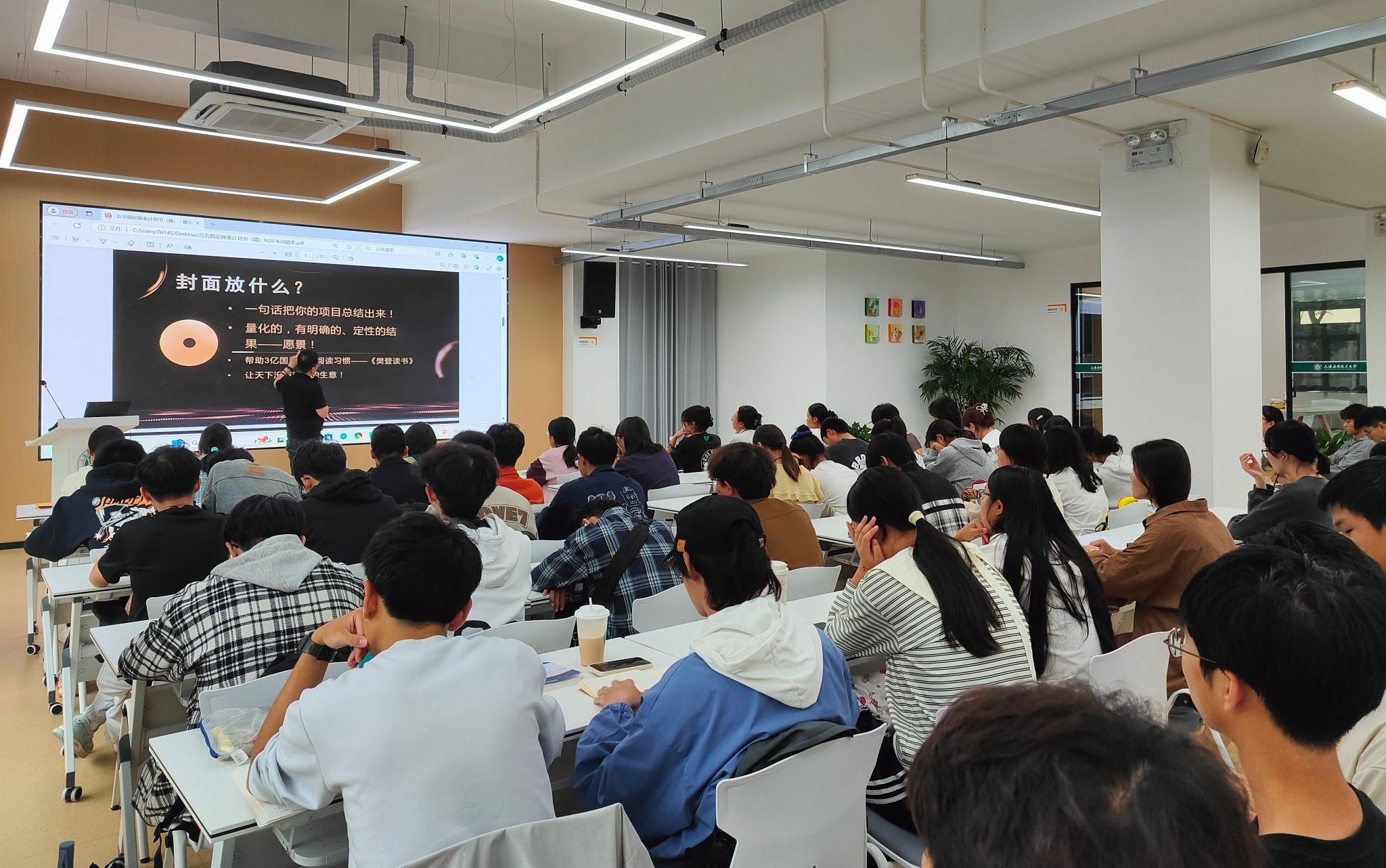 围绕“五页搞定商业计划书”这一主题,施强强调,商业计划书不是可行性报告,而是演示工具,是在讲一个“财富故事”。他详细讲解了商业计划书的撰写要点,包括项目愿景的总结、市场规模的强调、竞争格局的简述、解决方案的阐述、壁垒的构建以及团队和融资计划的介绍等。他提醒创业者,在撰写商业计划书时,应注重数据的量化、明确性,同时注重团队的自有实力,外部团队和导师的信息应简要提及。精彩讲解让在场师生受益匪浅,对商业计划书的撰写有了更深入的理解和认识。