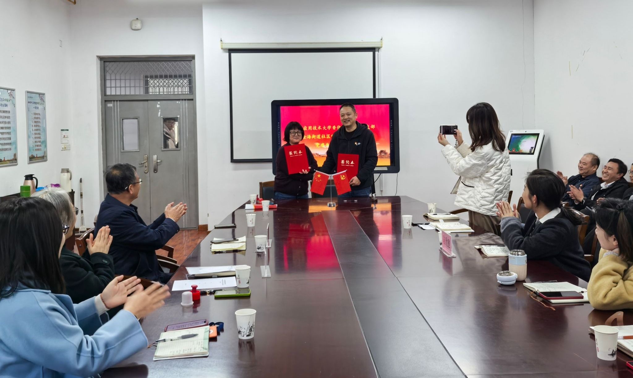 金海街道社区党群服务中心支部分别与香化学部教工一支部、人文学院教工四支部分别签订了党建共建协议。双方一致认为,金海街道与两个学院(部)开展党建共建,有利于将学校学术优势和科研优势转化为推动金海街道创新社区治理、美丽健康产业的协同发展,同时,金海街道坐拥东方美谷产业园、奉贤区博物馆、言子书院等经济、文化实体,将在为香化学部、人文学院学生提供实践基地、实习机会、帮助学生更好地了解社区,提高实践能力方面搭建良好平台,促进学校与街道互助共赢。