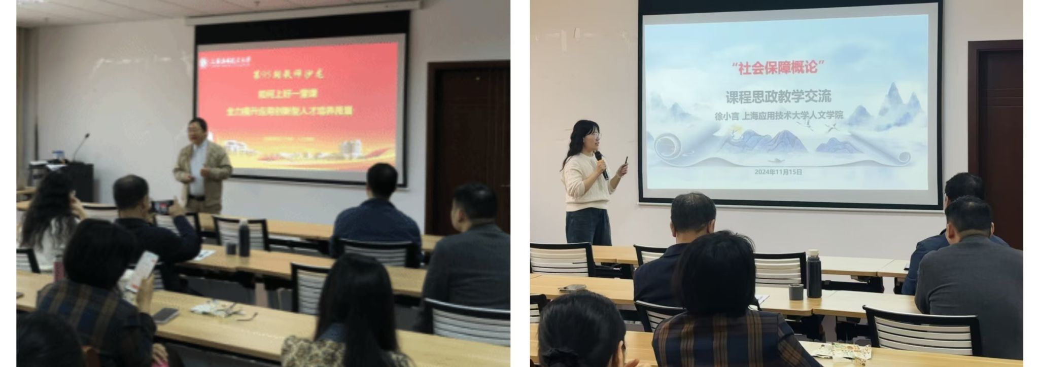 人文学院举办主题为“如何上好一堂课”第95期教师沙龙活动。邀请了上海市一流课程主持者、人文学院副院长周正柱,第三届上海市高校教师教学创新大赛一等奖获得者、人文学院劳动与社会保障系副主任徐小言主讲。活动由人文学院党委书记周文主持,人文学院领导班子和全体教师参加。