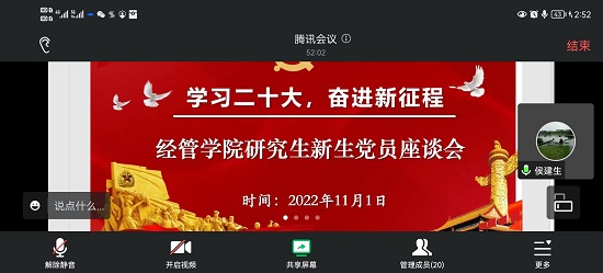 11月1月,经济与管理学院举行研究生新生党员座谈会,经管学院党委书记侯建生和学院全体2022级研究生新生党员参加。