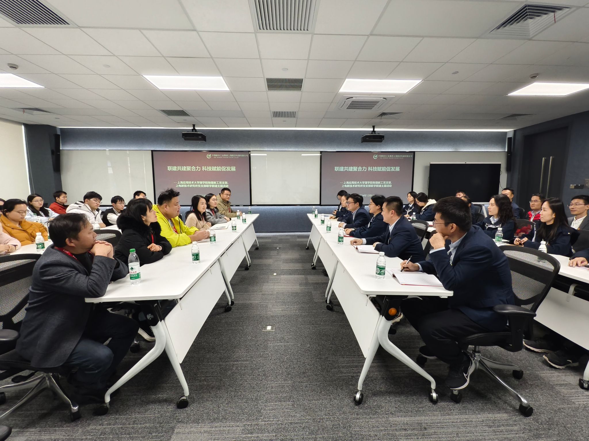 为深化教育综合改革,全面落实新时代党建“双创”工作要求,将党建与学科建设、人才培养和科学研究等中心工作深度融合, 12月6日,理学院物理教工党支部协同研究生党支部赴航空工业上海航空电器有限公司(以下简称“航空工业上电”)开展党建共建活动,双方围绕“联建共建聚合力,科技赋能促发展”主题开展深入交流。