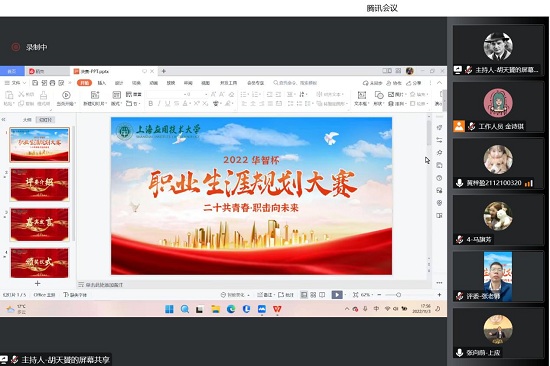 11月3日,2022华智杯职业生涯规划大赛决赛举行。一共10位选手参赛,包括3位专业组成员和7位非专业组成员(含1名校外选手)。10位选手通过PPT形式展示个人职业生涯规划成果,随后评委老师进行提问与点评,鼓励参赛选手就实践细节问题进行打磨、不断挖掘,以提升高度。