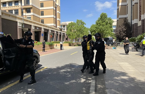 为提升校园遭遇突发暴力恐怖事件校警协同处置能力,9月20日,校安全保卫处联合奉贤区公安分局反恐支队、特警支队以及高校派出所,组织开展反恐宣传进高校暨安全综合演练活动。