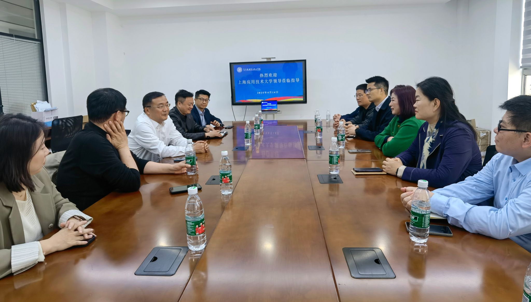 中基产教优化(北京)科技发展有限公司相关负责人、苏州健雄职业技术学院院长林长永等与潘志丹等开展了座谈交流,就人才培养、课程建设、校企合作等方面进行深入探讨,分享经验和做法,探索未来学生实践教学、实习实践等方面深入合作的可能途径。