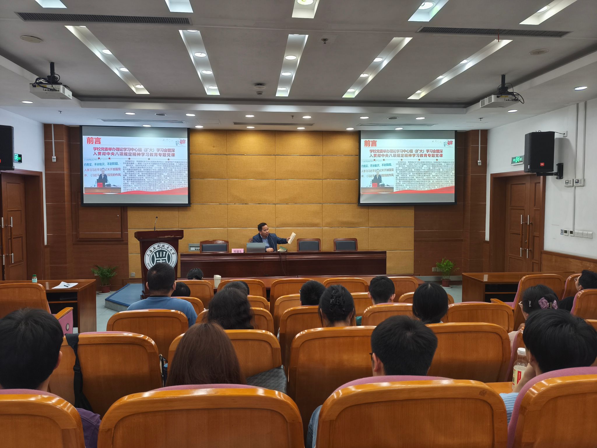 为扎实开展中央八项规定精神学习教育,进一步加强入党积极分子教育培养,端正入党动机,锤炼党性修养,经济与管理学院党委举办了深入贯彻中央八项规定精神学习教育专题党课。侯建生以《以优良党风引领学风建设》为题给学院第49期入党积极分子进行授课,从中央八项规定的主要内容、党史上的作风建设、积极分子如何以作风引领学风建设等方面,结合党史上的诸多案例,结合学习贯彻校党委书记郭庆松专题党课主要内容,强调了开展深入贯彻中央八项规定精神学习教育的重要意义,要求入党积极分子要不负青春韶华,关心国家大事,从小事做起,从点滴做起,带头助推学风建设,以实际行动兑现积极加入党组织的铮铮誓言。