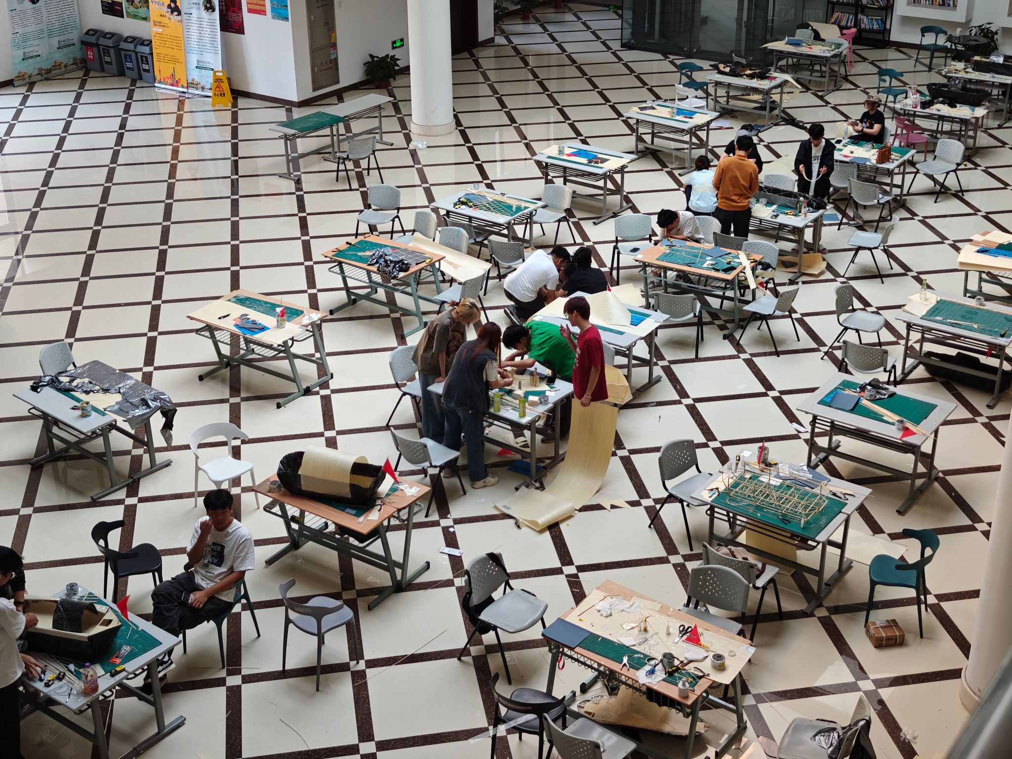 模型制作环节于奉贤校区第六学科楼开展,各参赛小组在限定时间内完成了独具特色的乌篷船模型。经过长达22小时的不懈努力,各小组的乌篷船模型纷纷精彩亮相。这些模型不仅体现了传统乌篷船的经典造型,还融入了现代工程理论,展现了学生们在轻量化、抗荷载和可持续材料应用上的创新思考。有的模型注重船体流线型设计,有的则强化了抗撞击性能,充分展现了同学们丰富的想象力和创造力,也让整个赛场洋溢着城建学院土木工程专业的浓厚文化气息。
