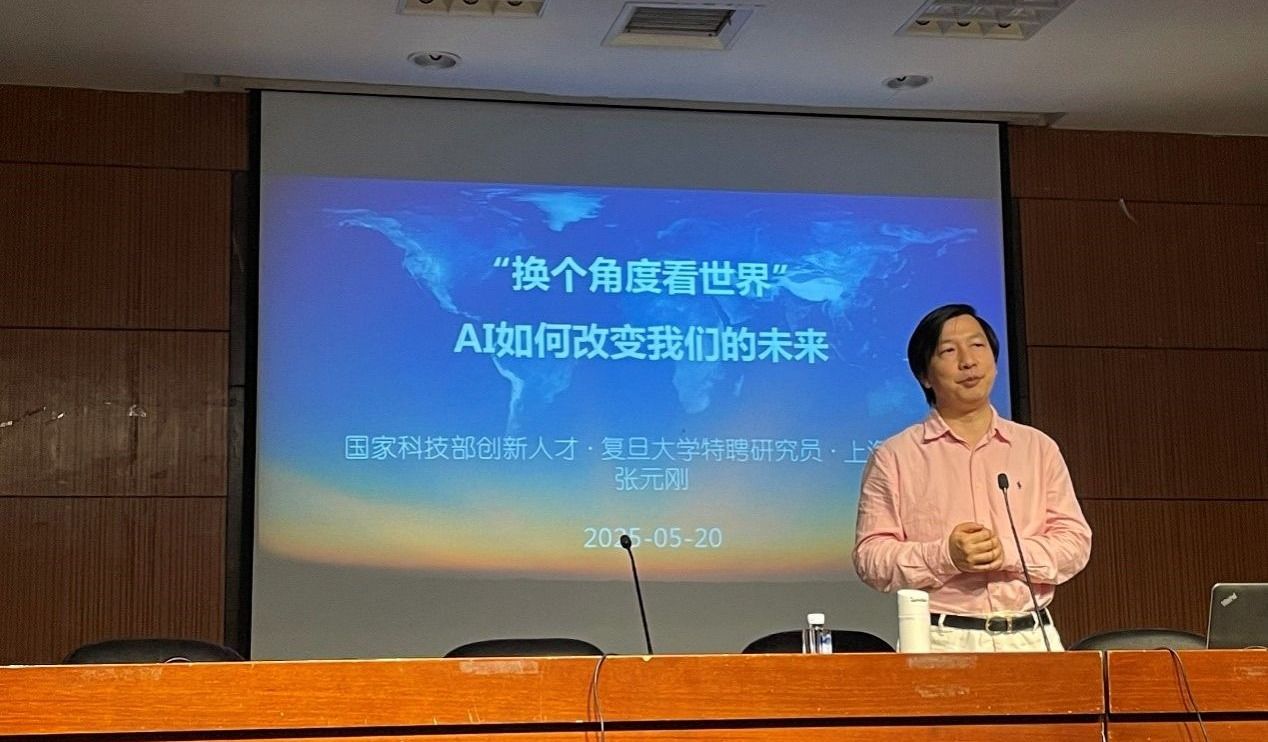 近日,科技部创新人才、上海IT人才协会副会长、2020年上海工匠、复旦大学特聘研究员张元刚教授应邀来校做《AI如何改变我们的未来》主题讲座。张元刚曾入选《福布斯》中文版“30位30岁以下创业青年”榜单、2019年上海智慧城市建设最高荣誉 “领军先锋”奖。会议由艺术学院院长、国家一级导演杨昕巍主持,艺术学院、经管学院200多名师生参加交流学习。