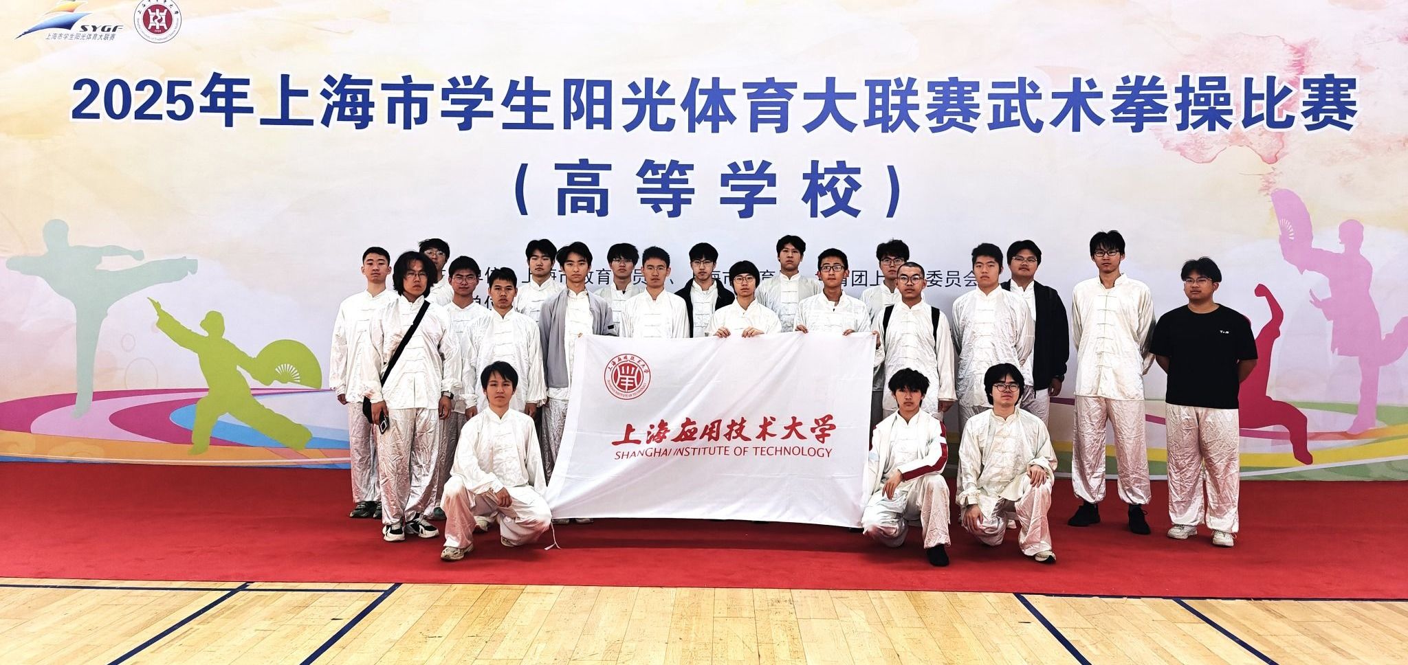 在2025年上海市学生阳光体育大联赛武术拳操比赛中,由体教部教师郑冬华指导的武术队荣获集体武术拳操项目三等奖。化工与能源技术学部王志豪、城建学院杜怀旭搭档夺得双人武术拳操项目二等奖。比赛涵盖集体武术拳操、双人武术拳操、功夫扇等多个项目,队员们以精湛技艺和创意编排赢得评委赞誉。