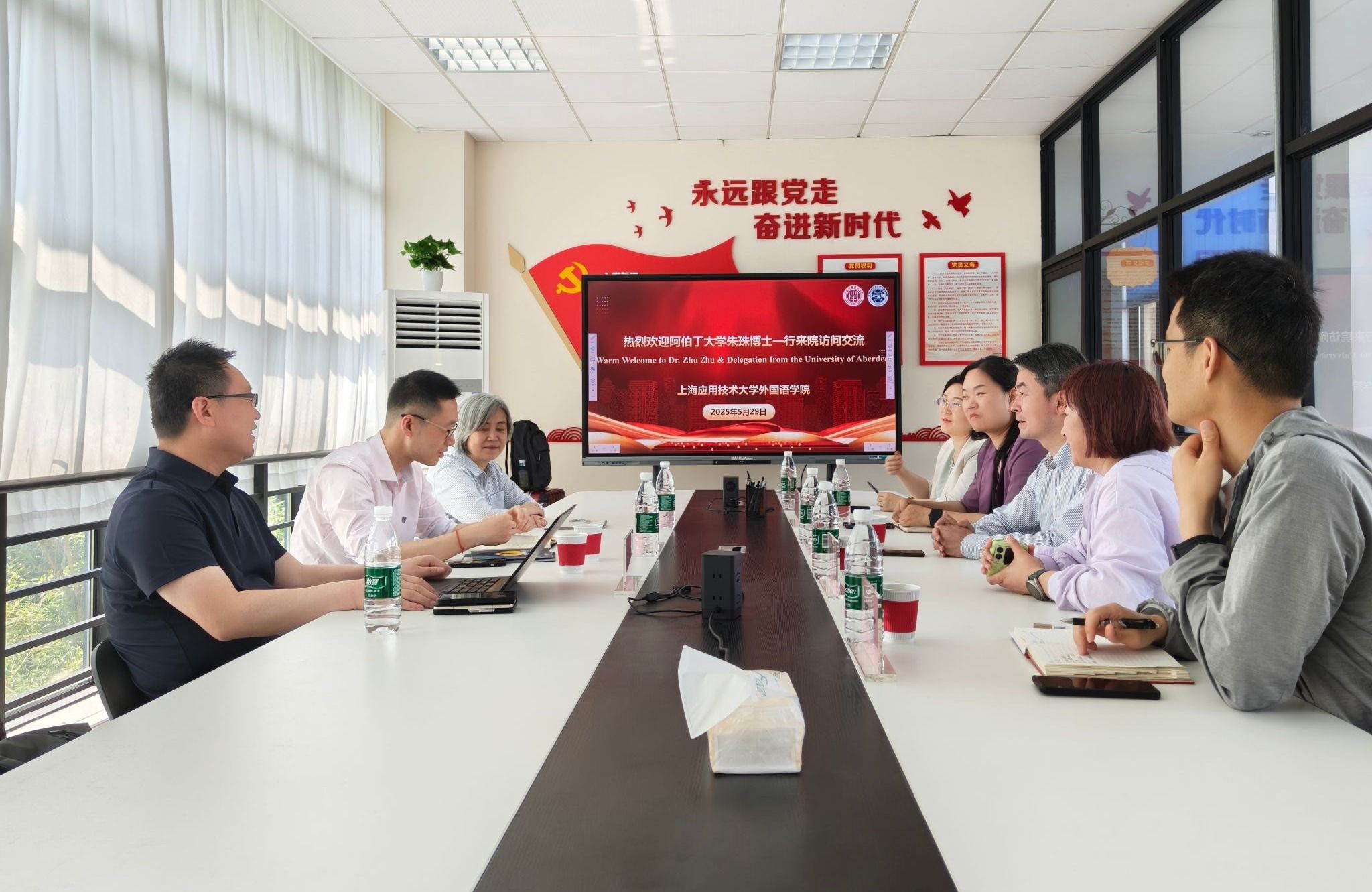 为进一步深化拓展我校国际合作交流,5月29日英国阿伯丁大学语言、文学、音乐和视觉文化学院国际部负责人朱珠博士一行应邀访问我校外国语学院。国际交流处处长陈青长、外国语学院党政领导班子热情接待并进行座谈。