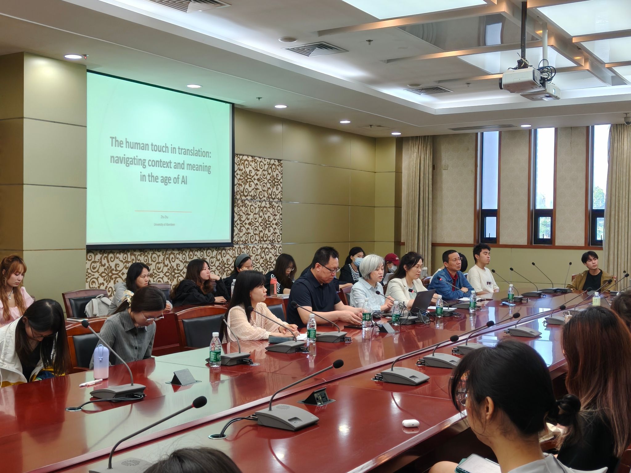 当日下午,朱珠博士还为学院师生带来一场题为《翻译中的人文维度:在人工智能时代驾驭语境与意义》专题学术讲座,强调在AI算法主导的时代,译者完成的不仅仅是不同语言文字间的转换,而且更需充分挖掘文字背后传达的背景信息和深层含义,坚守人文精神,守护跨文化沟通的意义完整性与情感温度,受到师生的欢迎。